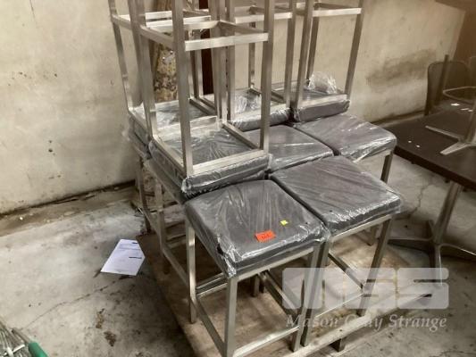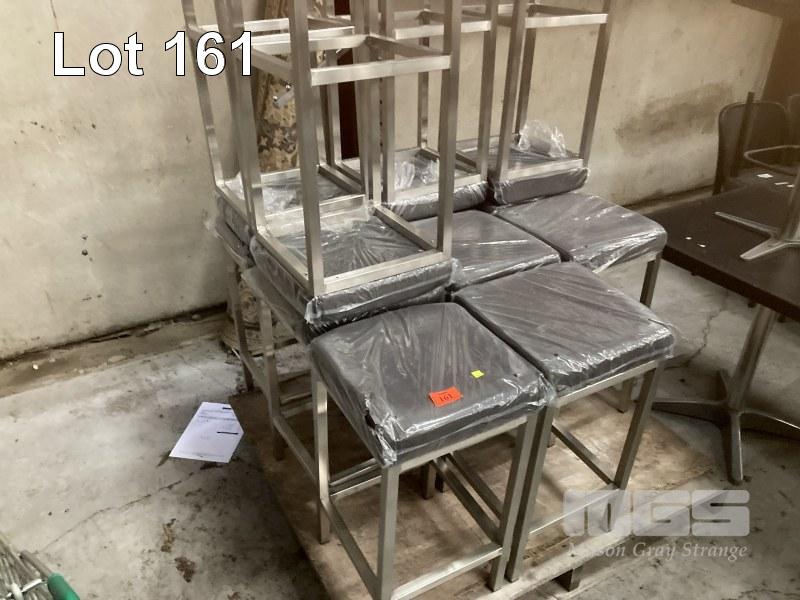 12 x BAR STOOLS, BROWN VINYL, STAINLESS STEEL FRAME