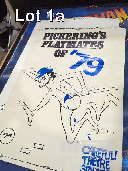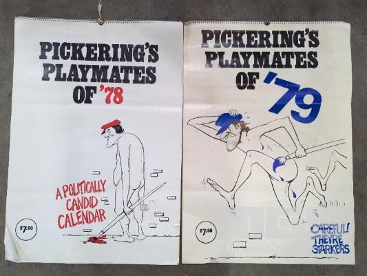 2 X CLASSIC VINTAGE PICKERING "PLAYMATES" POLITICAL CALENDARS 1978 & 1979. ALSO SPIDERMAN & LAVAZZA COFFEE POSTERS