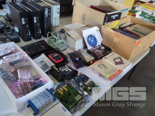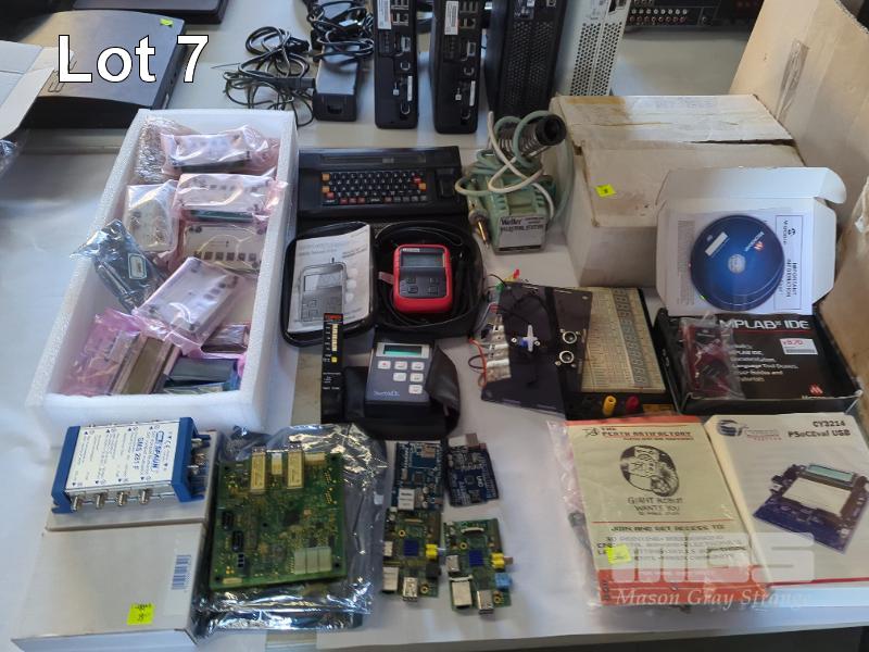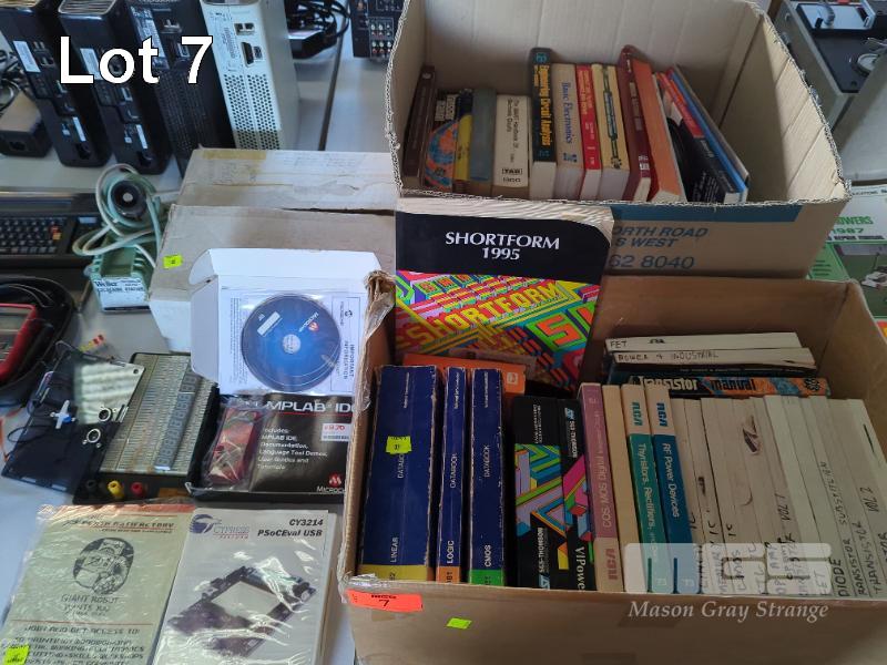 QUANTITY ASSORTED ELECTRONICS SERVICING BOOKS, HANDHELD OSCILLOSCOPE, SOLDERING IRON, DIGITAL CPU BOARDS, ETC