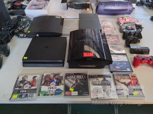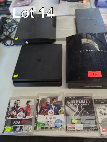 5 x SONY PLAYSTATION 2/3/4 GAME COMPUTERS, ASSORTED PS3 GAMES & HAND CONTROLS