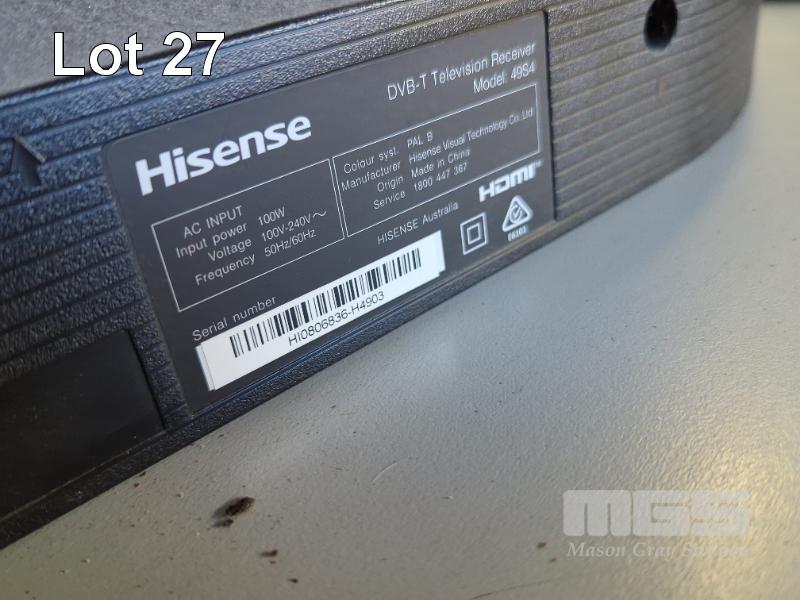 HISENSE 49" DVB-T TELEVISION RECEIVER (MODEL 49S4) WITH WALL MOUNT