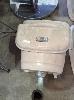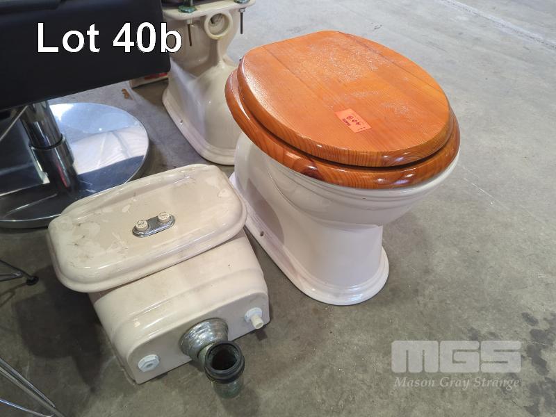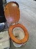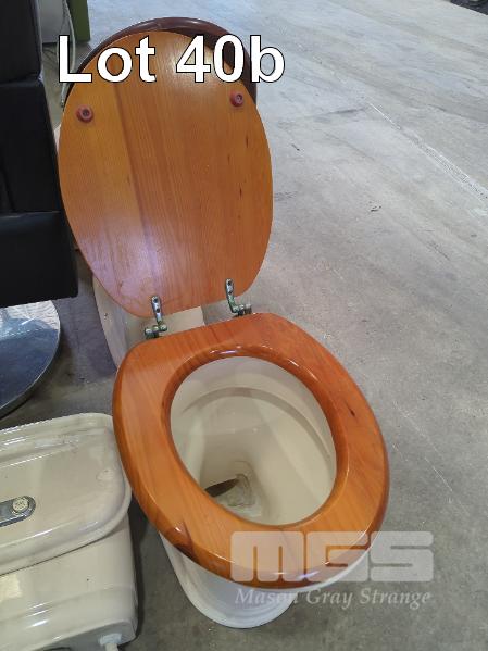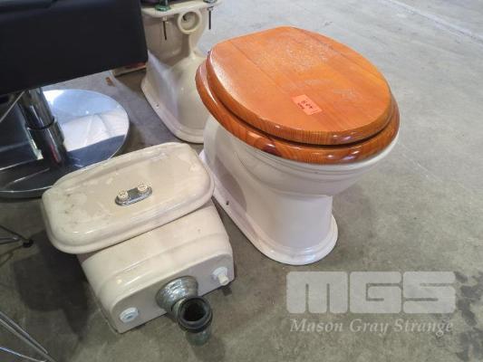 HERITAGE STYLE CERAMIC TOILET IN BEIGE, WOODEN SEAT CHROME TRIM.