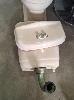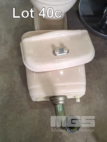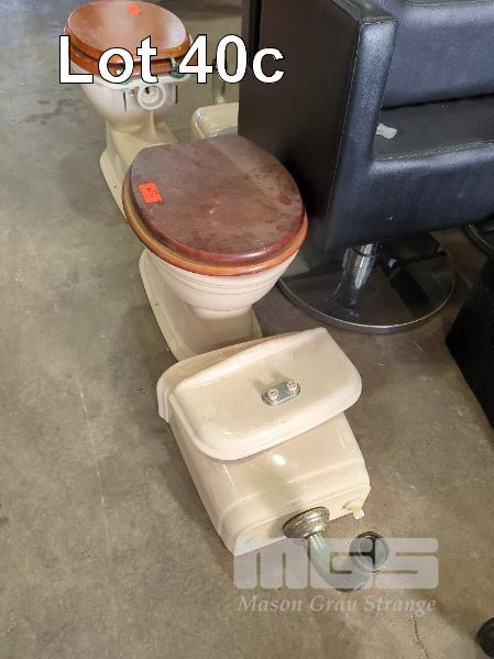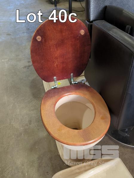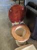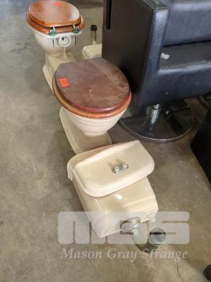 HERITAGE STYLE CERAMIC TOILET IN BEIGE, WOODEN SEAT CHROME TRIM.