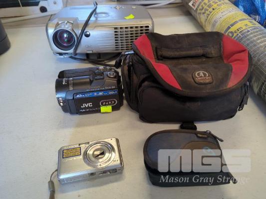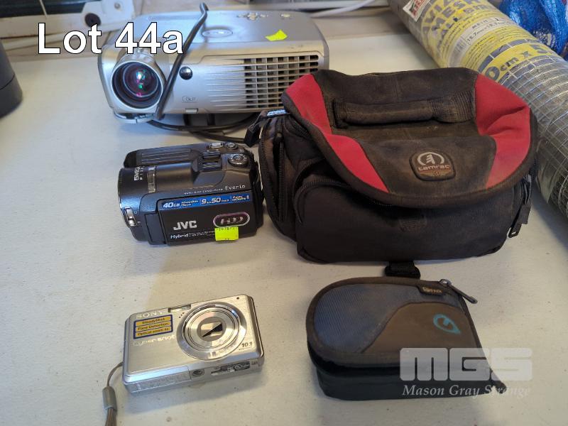DELL PROJECTOR, JVC HYBRID DIGITAL VIDEO CAMERA AND SONY CYBERSHOT DIGITAL CAMERA.
