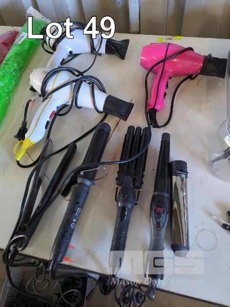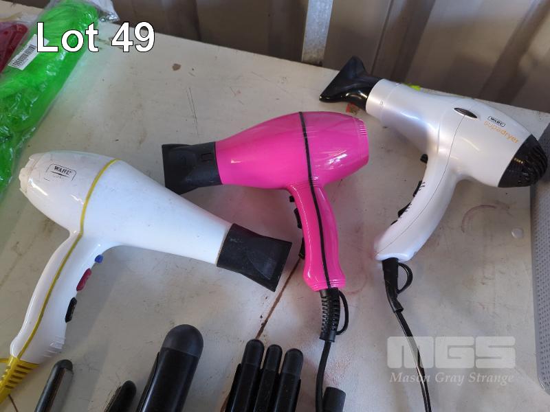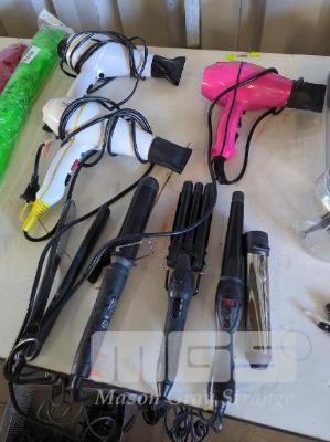 COLLECTION OF PROFESSIONAL HAIR SALON HANDHELD HAIR DRYERS, DIFFUSERS, NOZZLES AND CURLING WANDS.