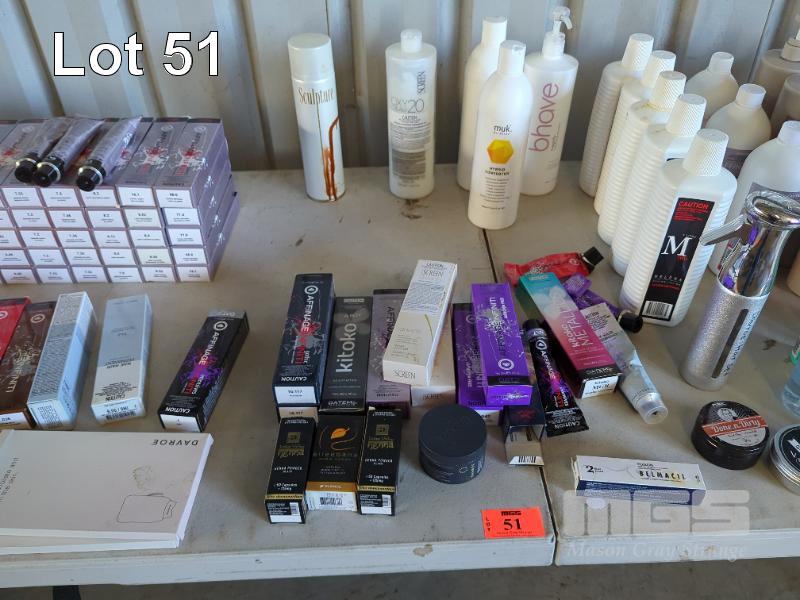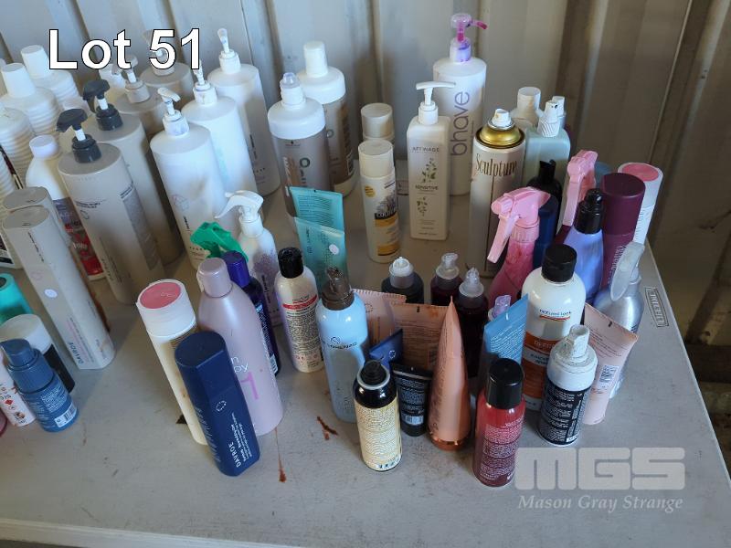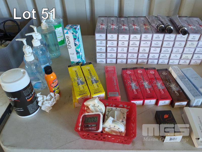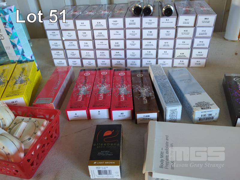 LARGE COLLECTION OF PROFESSIONAL HAIR SALON COLOURS AND PART CONTAINERS OF HAIR TREATMENT PRODUCT ETC (CONTENTS 1 X TABLE)