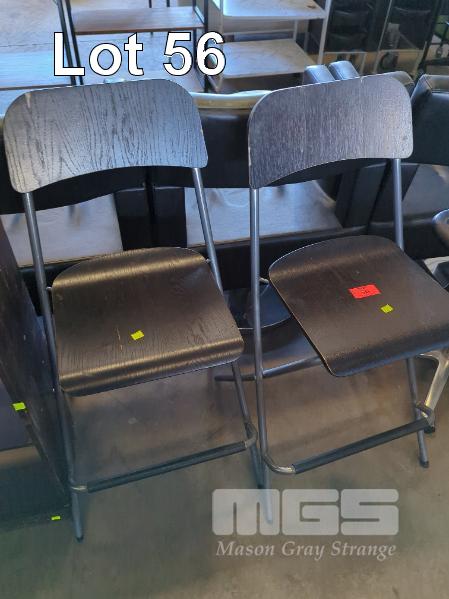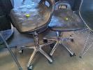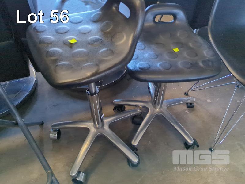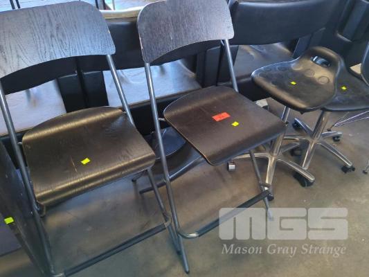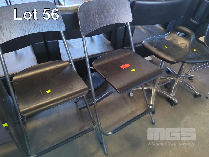 2 X FOLDING HAIR SALON MID BACK STOOLS & 2 X MOBILE ADJUSTABLE HEIGHT SALON STOOLS.