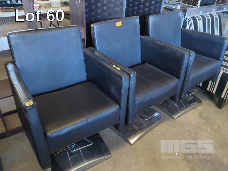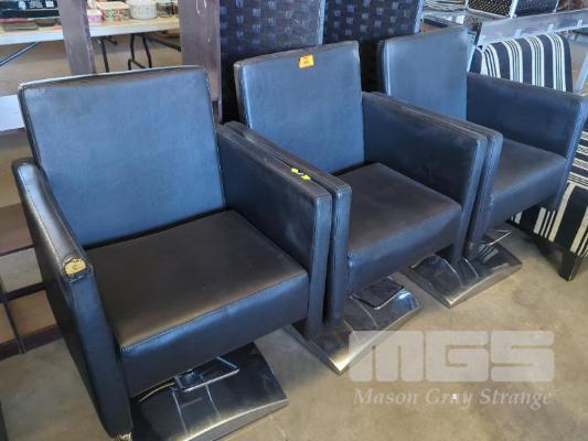 3 X ADJUSTABLE HEIGHT HAIR SALON CHAIRS.