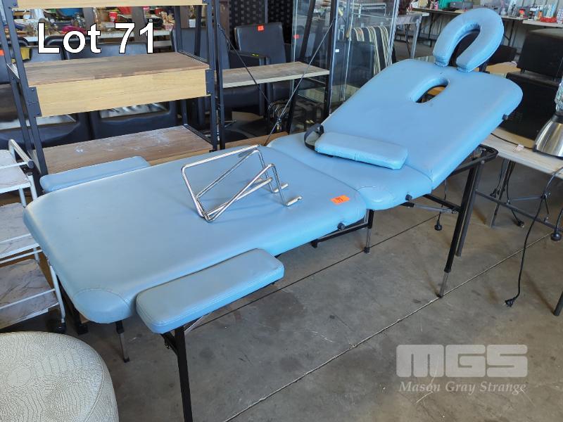 PORTABLE FOLDING MASSAGE TABLE WITH ACCESSORIES.