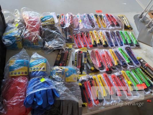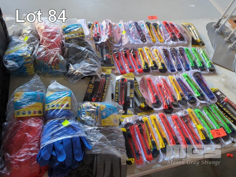 QUANTITY OF SNAP-CUTTER KNIVES AND WORK GLOVES. ALL COLOURS.