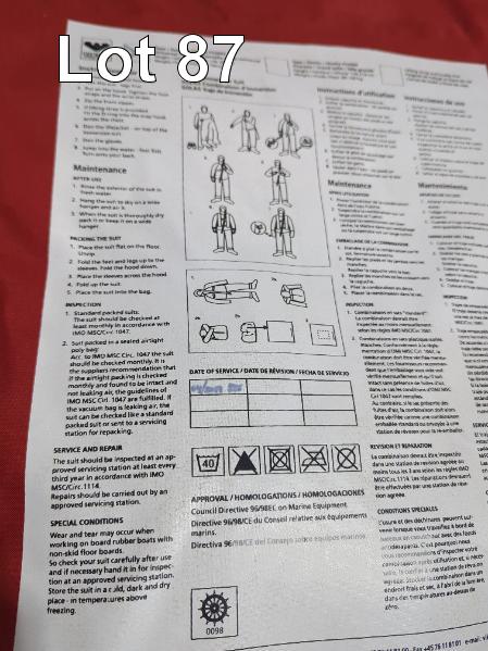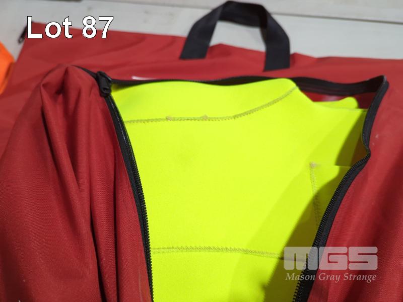 2 X VIKING SOLAS IMMERSION SUITS MOD: PS2004 DOM: 2016 SIZE: UNIVERSAL HEIGHT: 140-200cm WEIGHT: 50-100kg HIGH VISIBILITY YELLOW REFLECTIVE TAPE FOR HIGH VISIBILITY IN THE DARK THERMAL PROTECTION IN COLD WINTER IN CARRY BAG