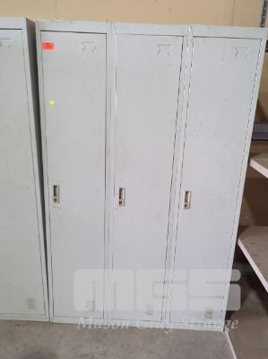 3-DOOR STEEL STAFF LOCKER UNIT IN BEIGE WITH KEYS (114 X 45 X 180 CM W D H)