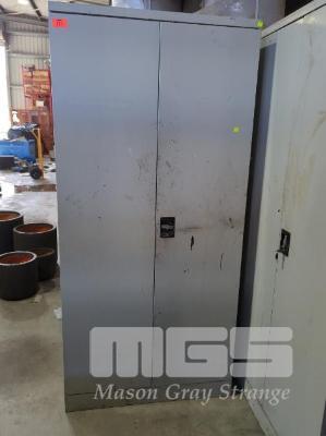 LOCKABLE STEEL 2-DOOR STORAGE CABINET, 5-SHELF (92 X 45 X 196 CM W D H) ** NO KEYS **