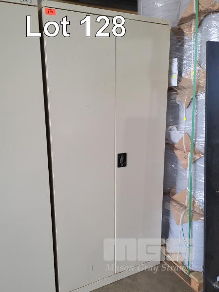 LOCKABLE STEEL 2-DOOR STORAGE CABINET, 4-SHELF (92 X 46 X 200 CM W D H) ** NO KEYS **