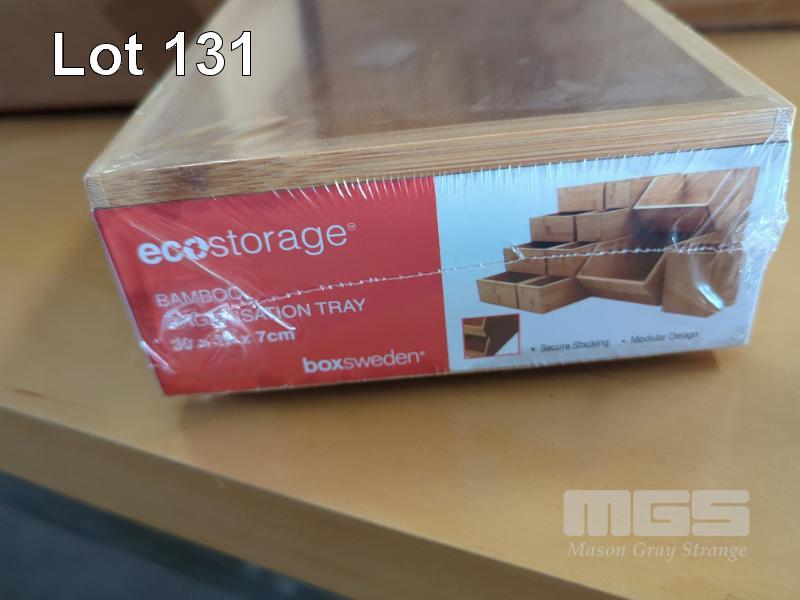 2 X CARTONS OF 12 "BOXSWEDEN" BAMBOO ORGANISATION TRAYS (30 X 15 X 7 CM W D H - 24 TRAYS IN TOTO)