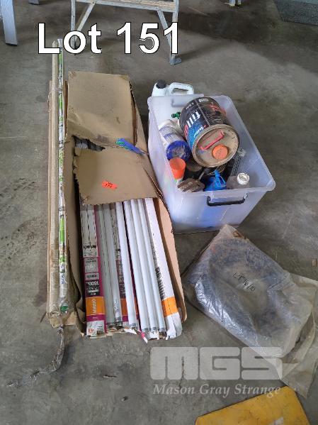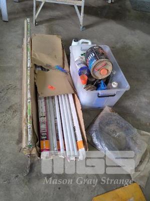 COLLECTION OF FLUORESCENT LIGHT TUBES AND QUANTITY OF PART CONTAINERS OF CHEMICALS PAINTS ETC