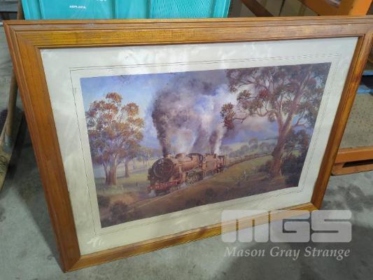 FRAMED PRINT. TRAIN IN AUSTRALIAN BUSH.