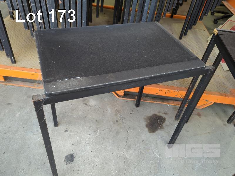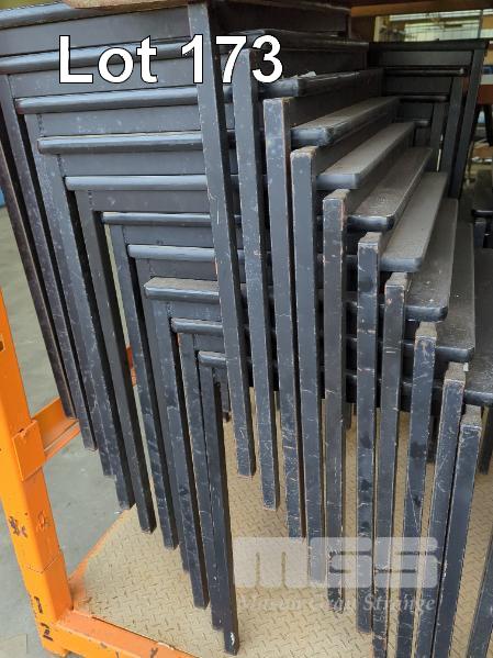 10 X STACKABLE EXAM DESKS - STEEL FRAME, LAMINATE TOPS ALL IN BLACK.