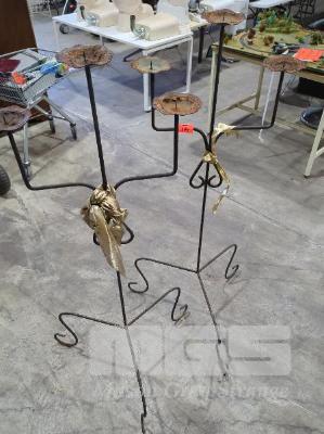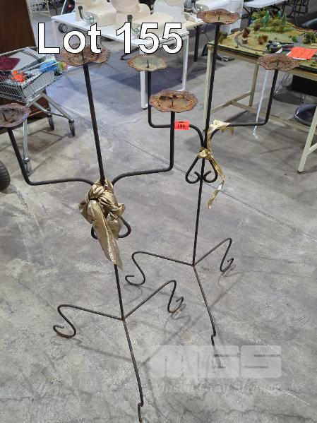 2 X TALL INDUSTRIAL METAL 3-ARM FLOOR CANDELABRAS, HEIGHT 1.6 M.