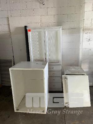 TIMBER DRESSER, WHITE, 900 x 500 x 1800mm 2 x OVERHEAD CUPBOARDS