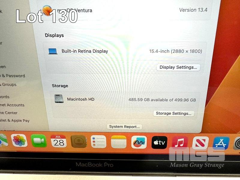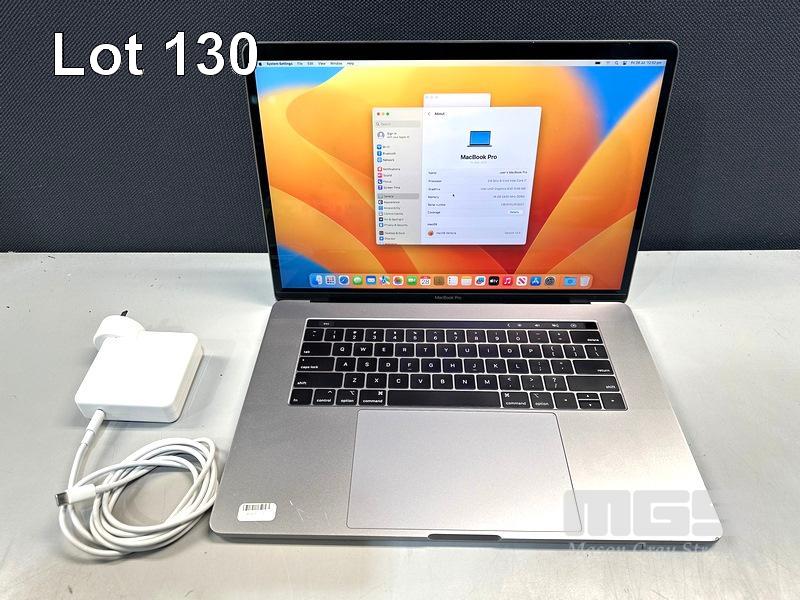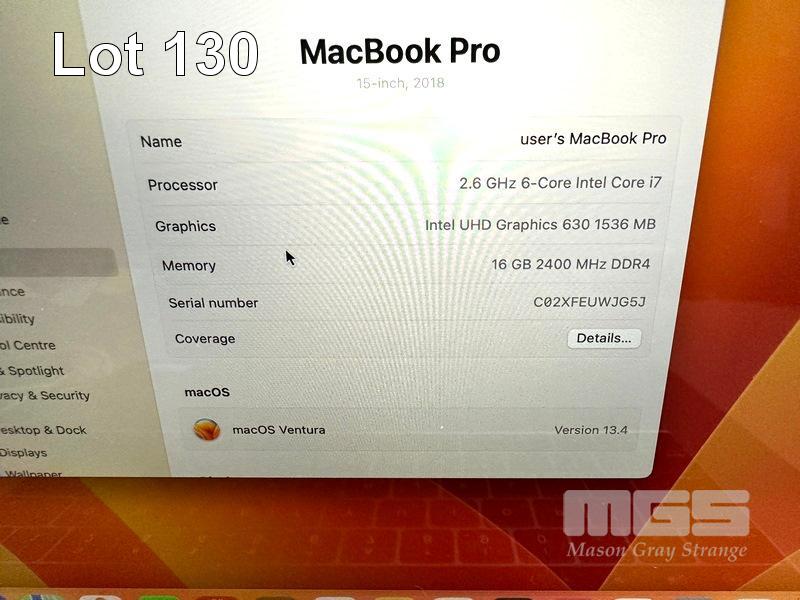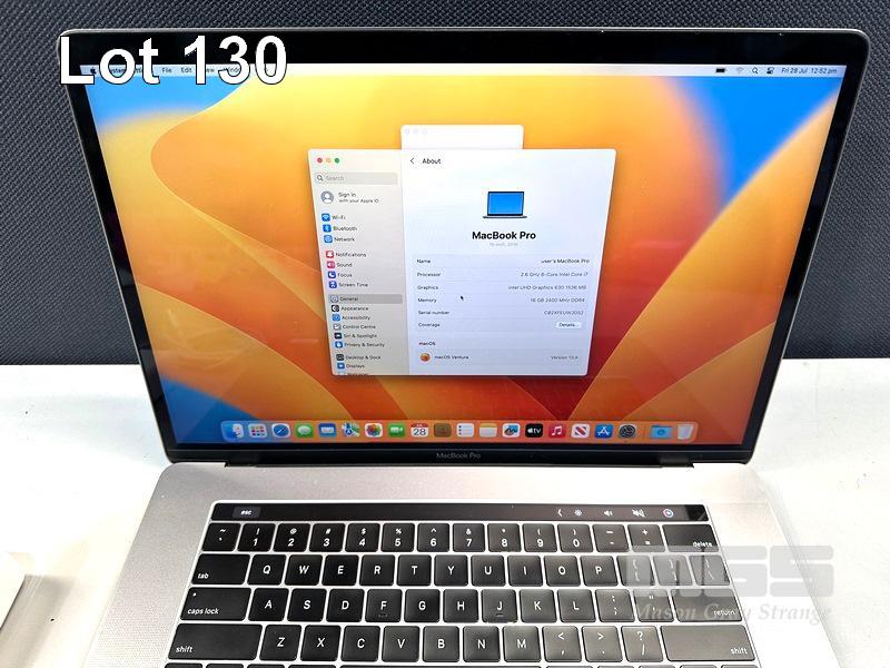 LAPTOP, APPLE MACBOOK PRO (A1990), CORE i7 8850H (8TH GEN) @ 2.6GHz, 16GB DDR4 RAM, 512GB SSD, 15.4" RETINA DISPLAY (2880x1800), INTEL UHD GRAPHICS 630, THUNDERBOLT 3, TOUCHBAR, Wi-Fi, BLUETOOTH, MAC OS 13 INSTALLED & GENERIC USB-C POWER SUPPLY (NOTE: MINOR MARKS ON SCREEN) S/N:C02XFEUWJG5J