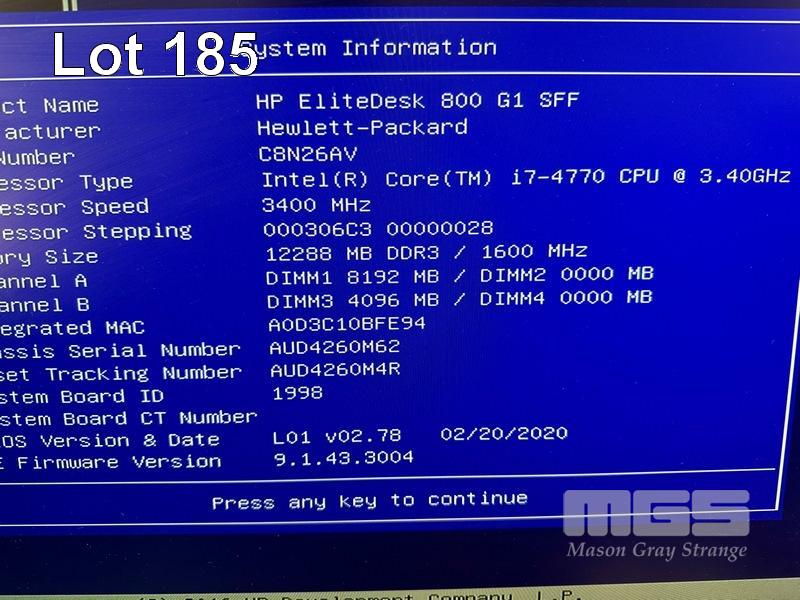 DESKTOP PC, HP ELITEDESK 800 G1 SFF, CORE i7 4770 (4TH GEN) @ 3.4GHz, 12GB DDR3 RAM, 128GB SSD, INTEL HD VIDEO, 10 x USB, WINDOWS 10 HOME INSTALLED (NO KEYBOARD, NO MOUSE) S/N:AUD4260M62