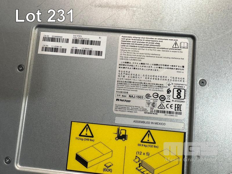 RACKMOUNT STORAGE ARRAY, NETAPP DS460C (NAJ-1503), 4U, 60 x 8TB SAS (12Gbps) HDD (X376A), 2 x IOM12 SAS 12G CONTROLLERS, 2 x PSU (NO 15A CABLES) S/N:SHJGD1912000002