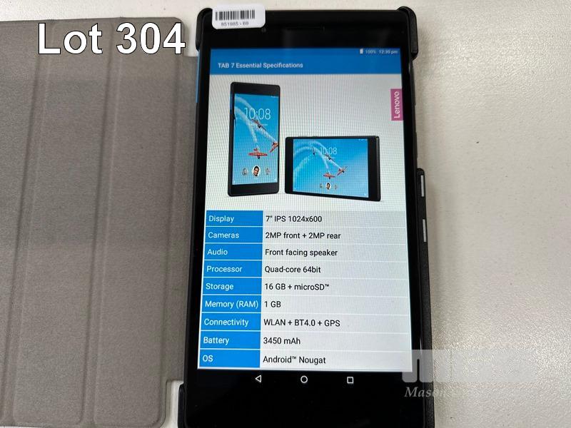 TABLET PC, LENOVO TAB 7 ESSENTIAL, 16GB, 7" SCREEN, MODEL TB-7304F WITH COVER (NO CABLE, NO CHARGER)