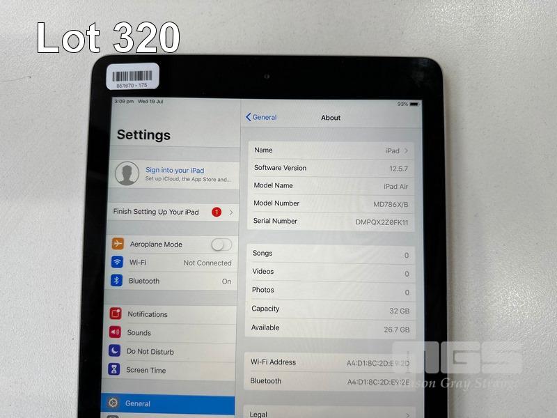 APPLE iPAD AIR, 32GB, Wi-Fi, SPACE GREY, MODEL A1474, MD786X/B (NO CABLE, NO CHARGER) S/N:DMPQX2Z0FK11