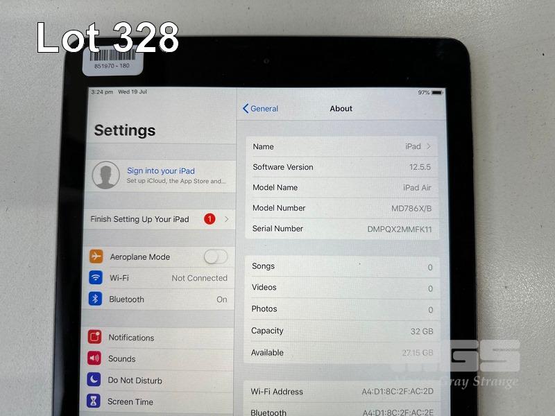 APPLE iPAD AIR, 32GB, Wi-Fi, SPACE GREY, MODEL A1474, MD786X/B (NO CABLE, NO CHARGER) S/N:DMPQX2MMFK11