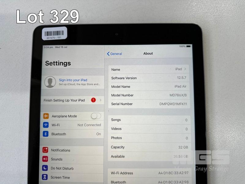 APPLE iPAD AIR, 32GB, Wi-Fi, SPACE GREY, MODEL A1474, MD786X/B (NO CABLE, NO CHARGER) S/N:DMPQWD1MFK11
