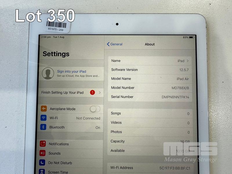 APPLE iPAD AIR, 16GB, Wi-Fi, SILVER, MODEL A1474, MD788X/B (NO CABLE, NO CHARGER) S/N:DMPN8NNTFK14
