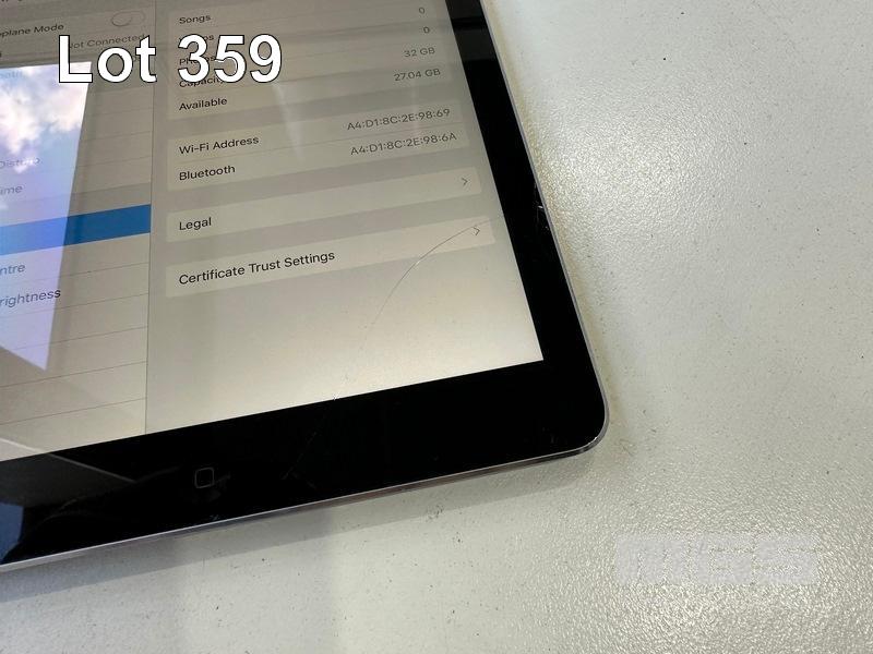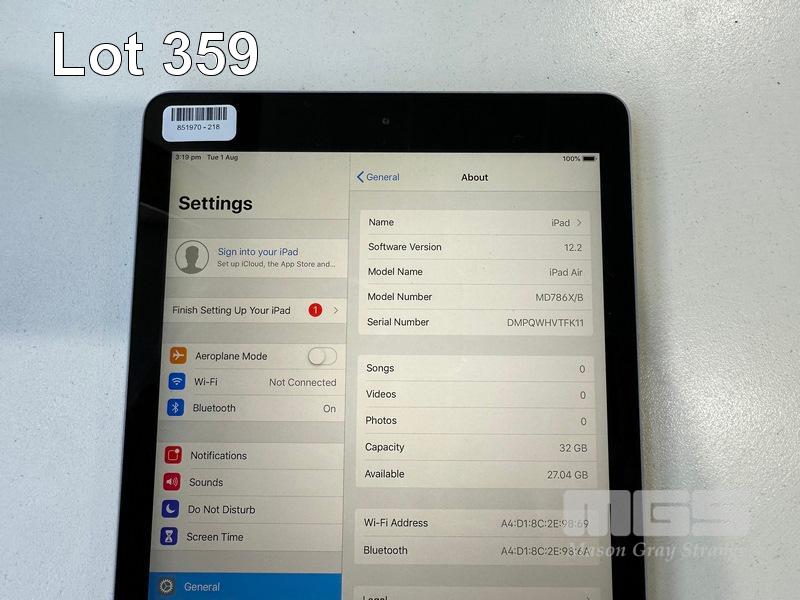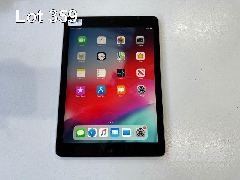 APPLE iPAD AIR, 32GB, Wi-Fi, SPACE GREY, MODEL A1474, MD786X/B (NO CABLE, NO CHARGER) (NOTE: CRACK LINES ON SCREEN) S/N:DMPQWHVTFK11