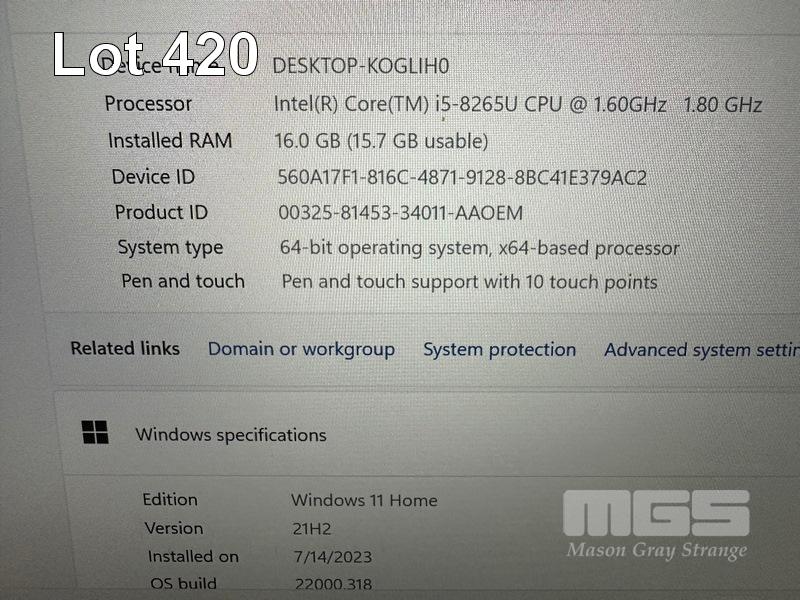 LAPTOP, LENOVO THINKPAD L390 YOGA, TYPE 20NU, CORE i5 8265U (8TH GEN) @ 1.6GHz, 16GB DDR4 RAM, 256GB NVMe M.2 SSD, 13.3" TOUCHSCREEN (1920x1080), INTEL UHD GRAPHICS, Wi-Fi, BLUETOOTH, STYLUS, WINDOWS 11 HOME INSTALLED (NO USB-C POWER SUPPLY) (NOTE: MINOR MARKS ON SCREEN) S/N:R90VXY0Y
