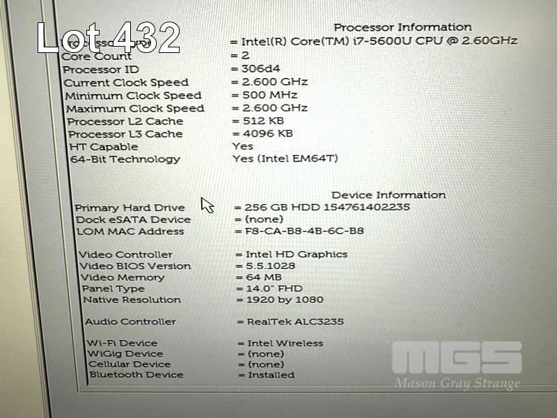 LAPTOP, DELL LATITUDE E7450, CORE i7 5600U (5TH GEN) @ 2.6GHz, 8GB DDR3 RAM, 256GB SSD, 14" WIDESCREEN (1920x1080), INTEL HD VIDEO, Wi-Fi, BLUETOOTH, WINDOWS 10 HOME INSTALLED & POWER SUPPLY S/N:4BX7H72