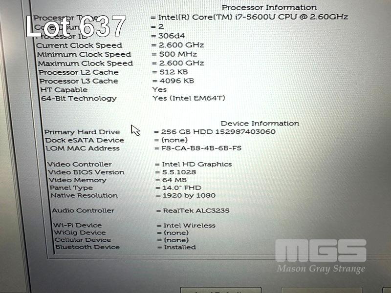 LAPTOP, DELL LATITUDE E7450, CORE i7 5600U (5TH GEN) @ 2.6GHz, 8GB DDR3 RAM, 256GB SSD, 14" WIDESCREEN (1920x1080), INTEL HD VIDEO, Wi-Fi, BLUETOOTH, WINDOWS 10 HOME INSTALLED & POWER SUPPLY S/N:1138H72
