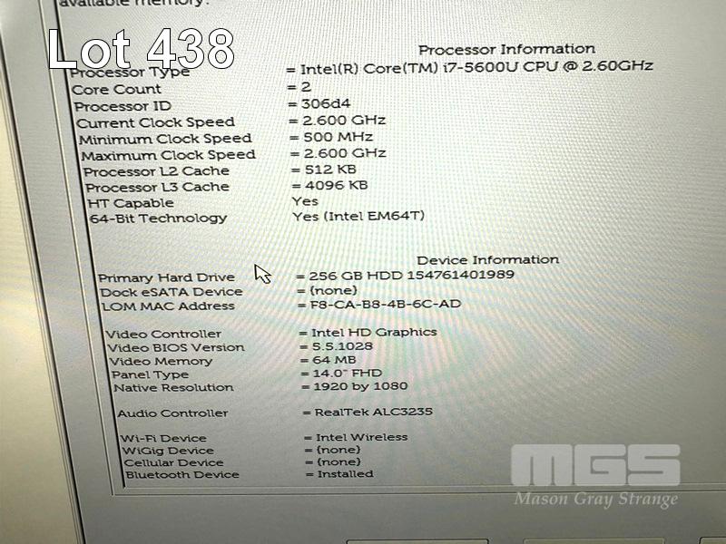 LAPTOP, DELL LATITUDE E7450, CORE i7 5600U (5TH GEN) @ 2.6GHz, 8GB DDR3 RAM, 256GB SSD, 14" WIDESCREEN (1920x1080), INTEL HD VIDEO, Wi-Fi, BLUETOOTH, WINDOWS 10 HOME INSTALLED & POWER SUPPLY S/N:F9X7H72