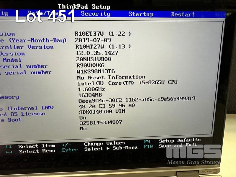 LAPTOP, LENOVO THINKPAD L390 YOGA, TYPE 20NU, CORE i5 8265U (8TH GEN) @ 1.6GHz, 16GB DDR4 RAM, 256GB NVMe M.2 SSD, 13.3" TOUCHSCREEN (1920x1080), INTEL UHD GRAPHICS, Wi-Fi, BLUETOOTH, STYLUS, WINDOWS 11 HOME INSTALLED (NO USB-C POWER SUPPLY) (NOTE: SCRATCH LINES ON CASING, MINOR MARKS ON SCREEN) S/N:R90VXXX6