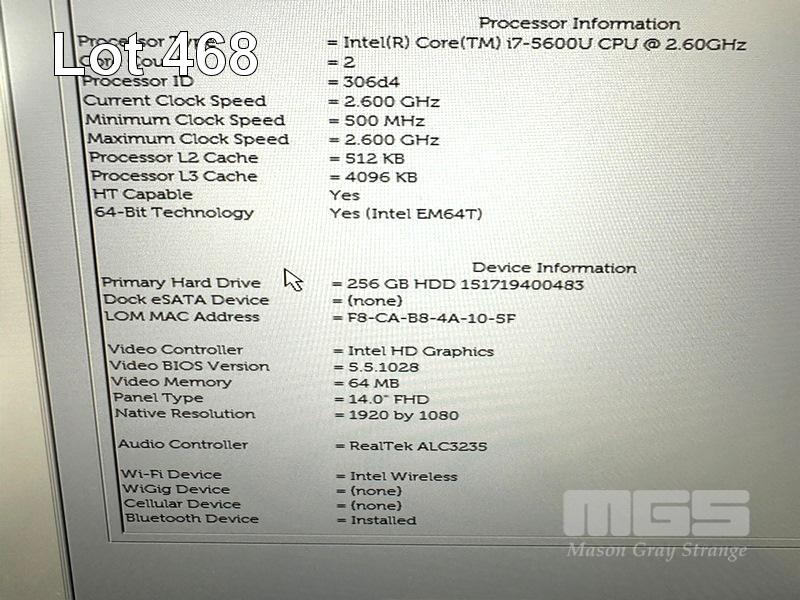 LAPTOP, DELL LATITUDE E7450, CORE i7 5600U (5TH GEN) @ 2.6GHz, 8GB DDR3 RAM, 256GB SSD, 14" WIDESCREEN (1920x1080), INTEL HD VIDEO, Wi-Fi, BLUETOOTH, WINDOWS 10 HOME INSTALLED & POWER SUPPLY S/N:JLQ7H72