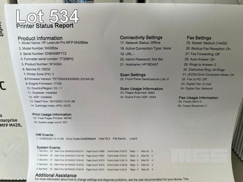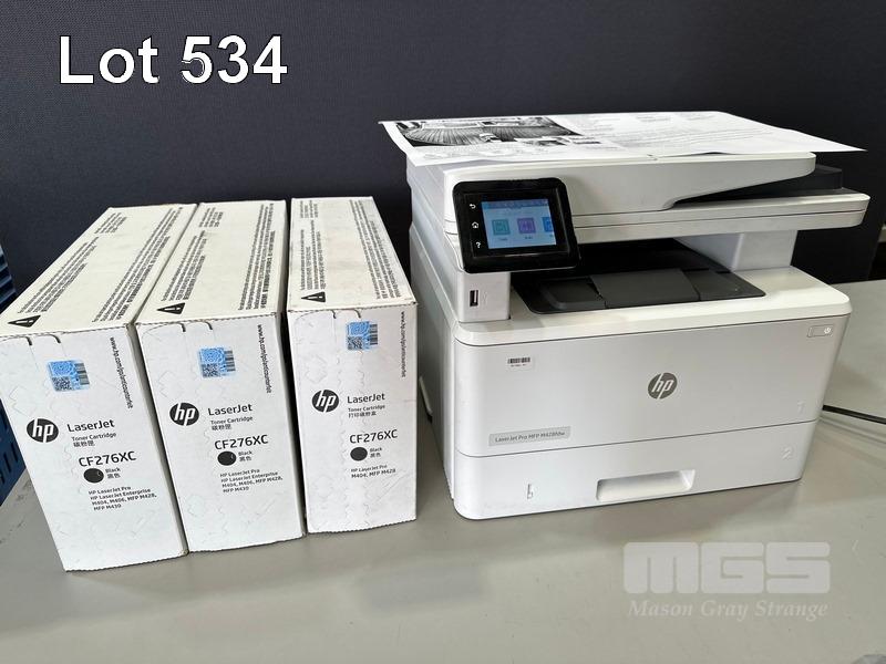 PRINTER, HP LASERJET PRO MFP M428fdw, ADF, USB, NETWORK, 48,782 PAGES (TEST PAGE ATTACHED) WITH 3 x SPARE TONER CARTRIDGES (CF276XC) S/N:CNBKM6P1TZ