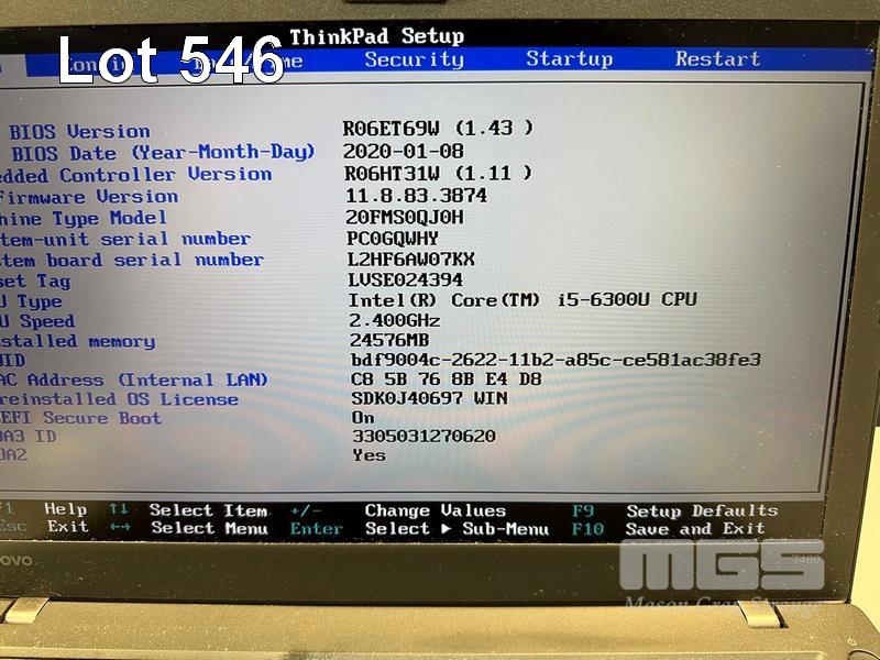 LAPTOP, LENOVO THINKPAD T460, TYPE 20FM, CORE i5 6300U (6TH GEN) @ 2.4GHz, 24GB DDR3 RAM, 256GB SSD, 14" WIDESCREEN (1920x1080), INTEL HD VIDEO, Wi-Fi, BLUETOOTH, WINDOWS 10 PRO INSTALLED & POWER SUPPLY (NOTE: MINOR MARKS ON SCREEN) S/N:PC0GQWHY