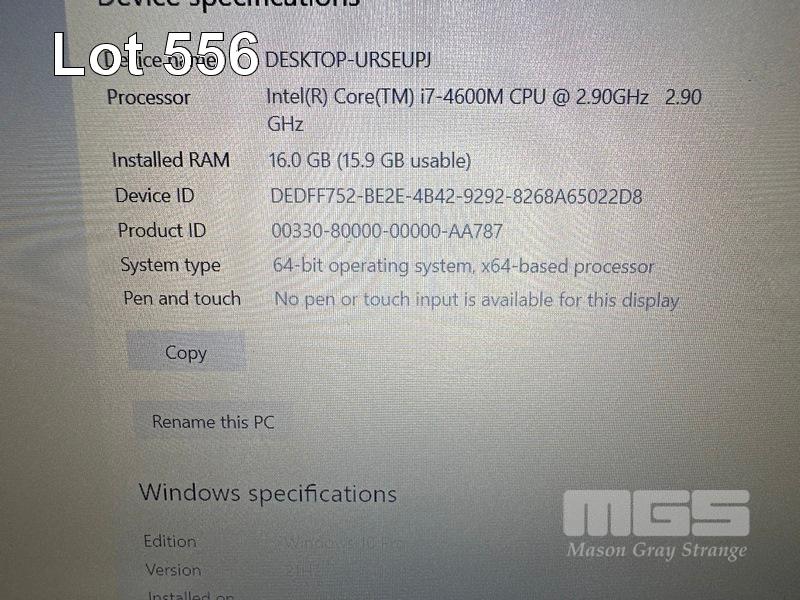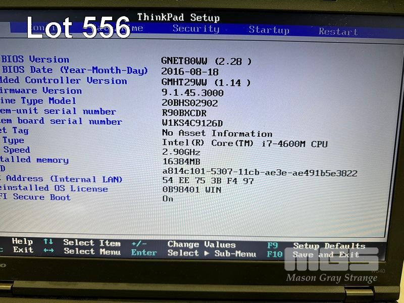 LAPTOP, LENOVO THINKPAD W540, TYPE 20BH, CORE i7 4600M (4TH GEN) @ 2.9GHz, 16GB DDR3 RAM, 256GB SSD, DVD-RW, 15.6" WIDESCREEN (1920x1080), INTEL HD VIDEO, 2GB NVIDIA QUADRO K1100M VIDEO, Wi-Fi, BLUETOOTH, WINDOWS 10 PRO INSTALLED (NO POWER SUPPLY) (NOTE: BRIGHT SPOTS CORNERS OF SCREEN, 1 x USB PORT FAULTY, MARKS ON SCREEN) S/N:R90BXCDR