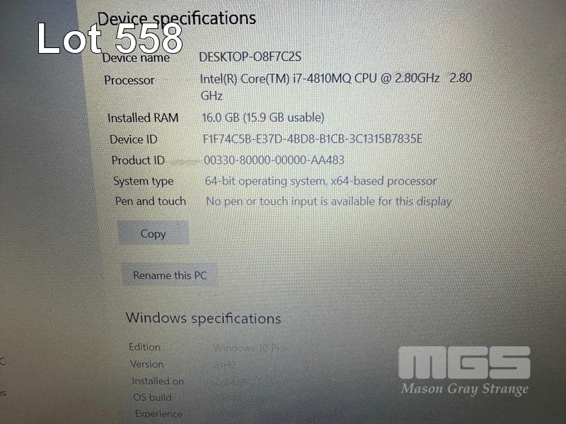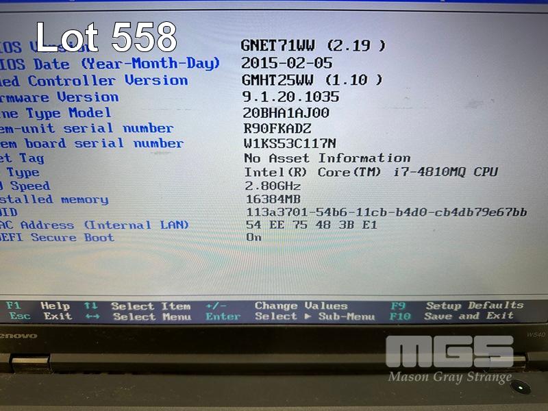LAPTOP, LENOVO THINKPAD W540, TYPE 20BH, CORE i7 4810MQ (4TH GEN) @ 2.8GHz, 16GB DDR3 RAM, 1TB SATA HDD, 15.6" WIDESCREEN (1920x1080), INTEL HD VIDEO, 2GB NVIDIA QUADRO K1100M VIDEO, Wi-Fi, BLUETOOTH, WINDOWS 10 PRO INSTALLED (NO POWER SUPPLY) (NOTE: MARKS ON SCREEN) S/N:R90FKADZ