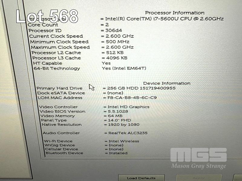 LAPTOP, DELL LATITUDE E7450, CORE i7 5600U (5TH GEN) @ 2.6GHz, 8GB DDR3 RAM, 256GB SSD, 14" WIDESCREEN (1920x1080), INTEL HD VIDEO, Wi-Fi, BLUETOOTH, WINDOWS 10 HOME INSTALLED & POWER SUPPLY S/N:G57CH72
