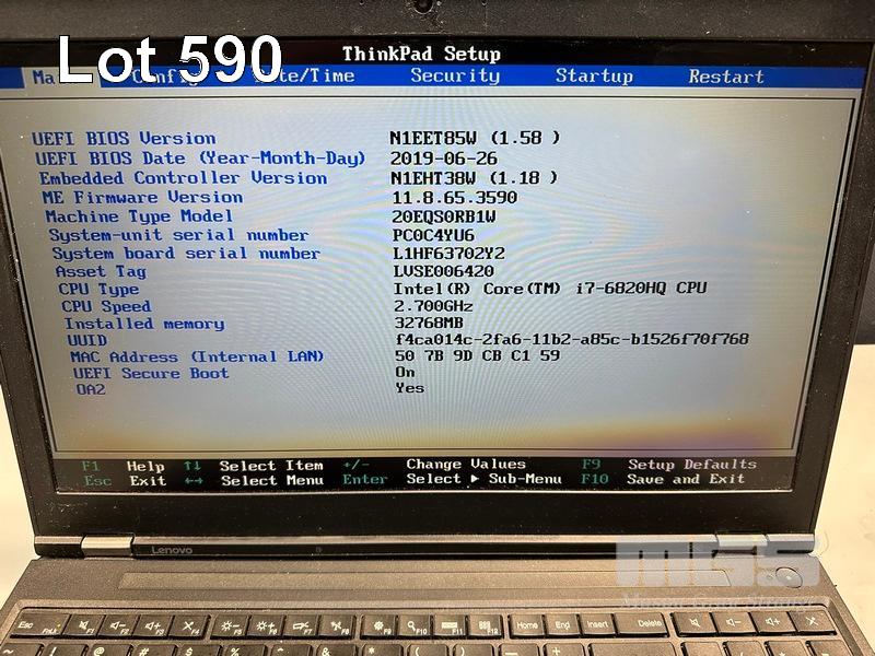 LAPTOP, LENOVO THINKPAD P50 MOBILE WORKSTATION, TYPE 20EQ, CORE i7 6820HQ (6TH GEN) @ 2.7GHz, 32GB DDR4 RAM, 256GB SSD, 15.6" WIDESCREEN (1920x1080), 4GB NVIDIA QUADRO M2000M VIDEO, Wi-Fi, BLUETOOTH, WINDOWS 10 PRO INSTALLED (NO POWER SUPPLY) (NOTE: SCREEN COLOUR FAULT, MARKS ON SCREEN) S/N:PC0C4YU6