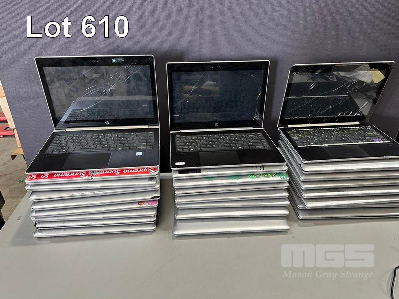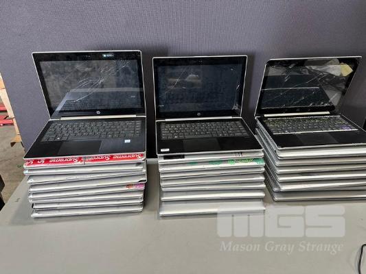 25 x LAPTOPS, HP PROBOOK 430 G5 (NOTE: ALL DAMAGED CASES & SCREENS, INCOMPLETE, PARTS MISSING, NO HARD DRIVES, NO POWER SUPPLIES)