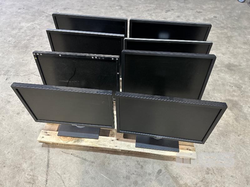 8 x ASST DELL LCD MONITORS (ALL VARIOUS MARKS, BRIGHT SPOTS) (NO CABLES)