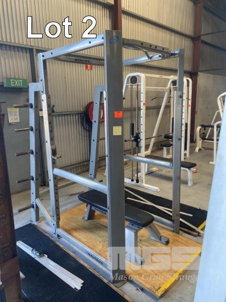NAUTILUS COMMERCIAL SQUAT RACK WITH HORIZONTAL WORKOUT BENCH