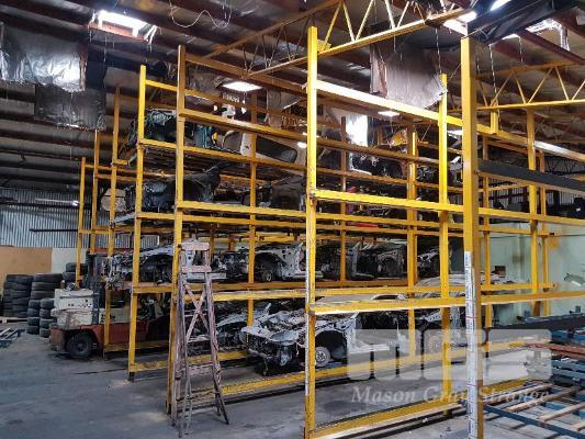 LARGE AUTOMOTIVE STORAGE SYSTEM, SUIT APPROX 90 x ROLLING 1500 x 1700mm STORAGE BASES WITH 70 x ROLL IN ROLL OUT STORAGE BASES, 1500 x 1700mm & 1500 x 1640mm (UNIT HAS BEEN DISMANTLED FOR BUYER TO COLLECT)