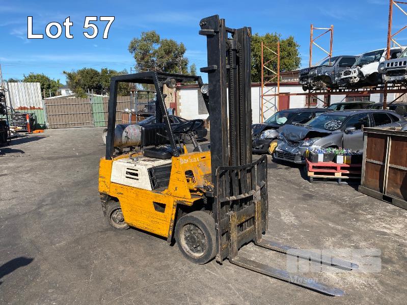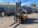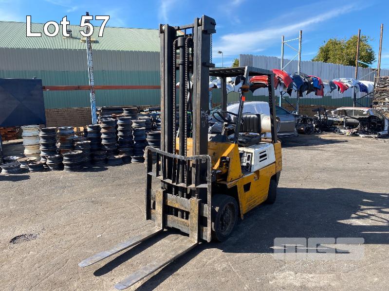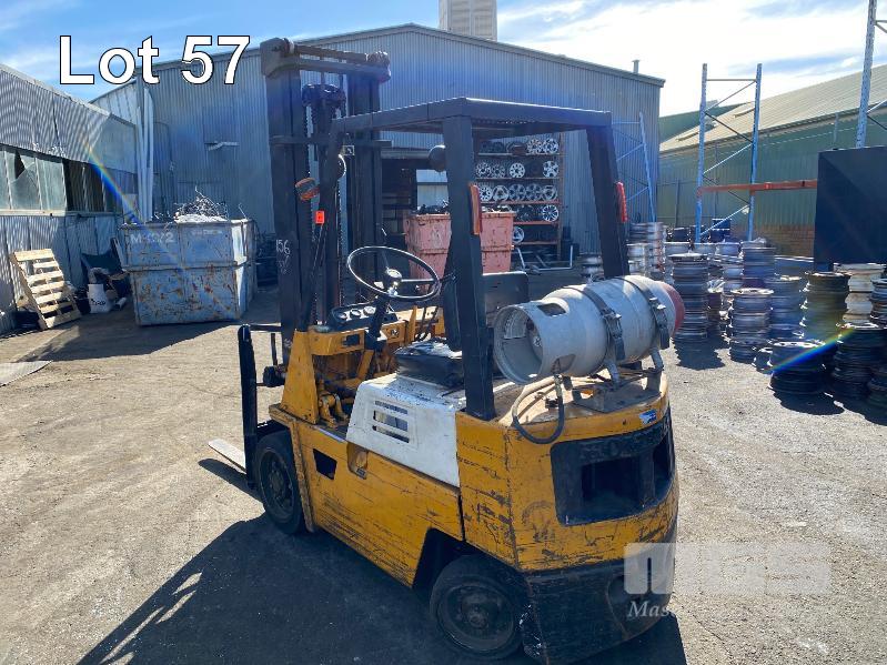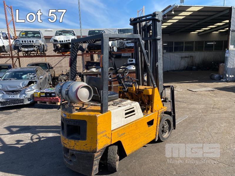 KOMATSU FORKLIFT, 1.5 TONNE CAP, MODEL: FG255-3, SERIAL: 60318, 8,277hrs, 4m MAX HEIGHT, TILT, SOLID TYRES (AVERAGE CONDITION), LPG (BOTTLE NOT INCLUDED)